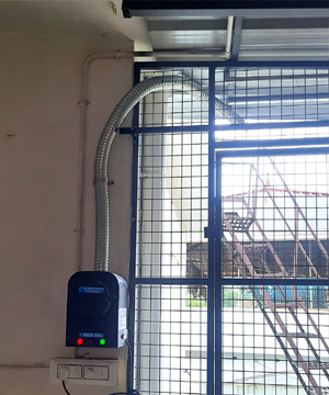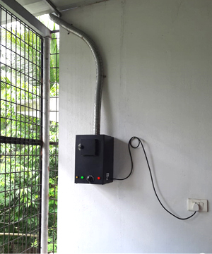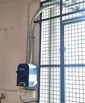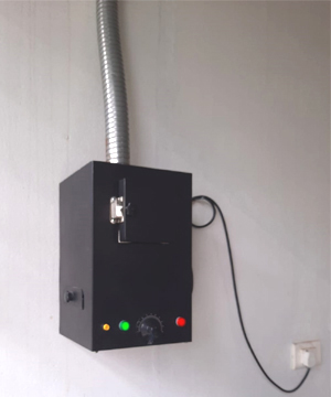 The exhaust pipe in the napkin incinerator helps to safely exhaust the gases generated during the combustion process.